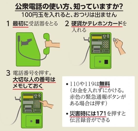 公衆電話の場所や使い方なんかを